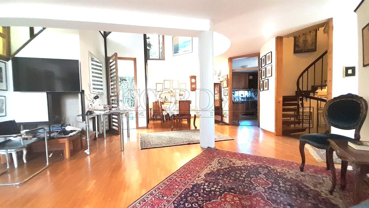 ABANO TERME, villa indipendente dallo stile unico caratterizzato da una struttura antisismica innovativa per l´ epoca costituita da travi in ferro a vista lungo tutto il perimetro sorretti da pilastro centrale in calcestruzzo armato. Internamente, la soluzione presenta numerose finestre che favoriscono luminosità naturale costante che assieme al soppalco aggiungono profondità e fascino agli ambienti. Nel terrazzo coperto adiacente al soggiorno è presente un camino esterno che amplia le opportunità di convivialità in assoluta privacy. Il reparto notte comprende 3 camere da letto più un servizio mentre un garage triplo oltre un locale studio con entrata indipendente completano l´ offerta. Esternamente spicca il giardino di 650 mq, completamente piantumato che circonda l´abitazione, ideale per momenti all´aperto con bambini e amici a quattro zampe. Altra caratteristica rilevante è la presenza di pozzo artesiano funzionante, elemento utile in contesti residenziale. Classe F. € 455.000