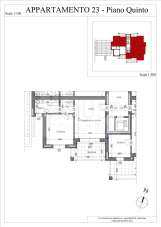 L’appartamento n. 23, situato al quinto piano, è composto da: