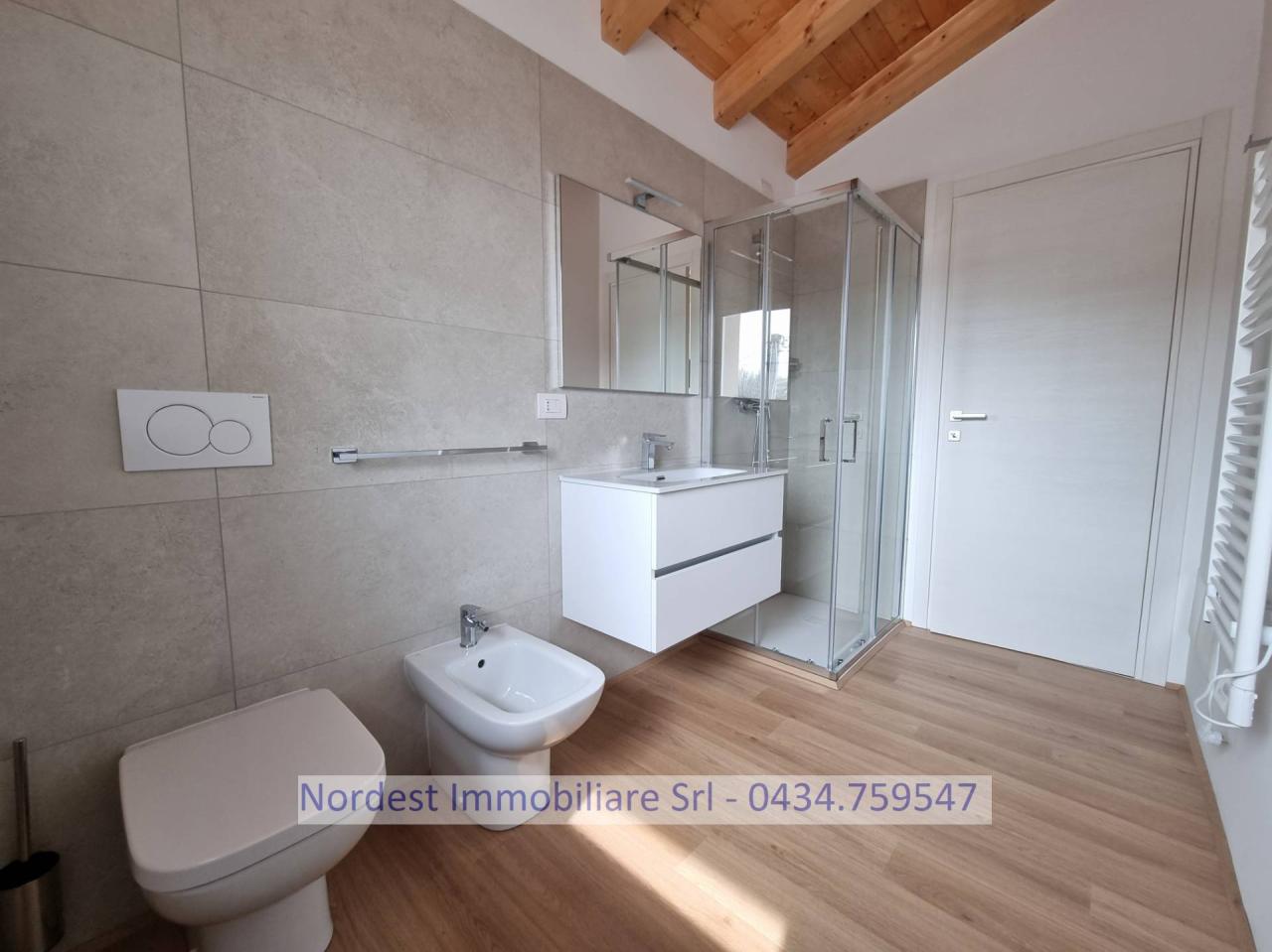 Affittasi nuovo monolocale al piano primo di una palazzina di sole sei unit. L´ appartamento composto di soggiorno/cucina/camera, bagno, ripostiglio, posto auto. L´ abitazione viene consegnata completamente arredata. Il canone di locazione comprende i consumi relativi a energia elettrica, riscaldamento, climatizzazione, acqua calda e acqua fredda (con massimale). L´ immobile dotato di impianti tecnologici di ultimissima generazione per il risparmio energetico, quali impianto fotovoltaico e batterie di accumulo. Si richiedono referenze e contratto a tempo indeterminato. No locazioni brevi. Informazioni solo previo appuntamento telefonico (non verranno considerate le richieste pervenute a mezzo e.mail). Per maggiori informazioni, chiama subito Nordest Immobiliare al nr. 0434759547. - SC9464144