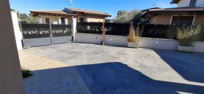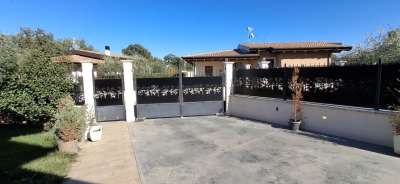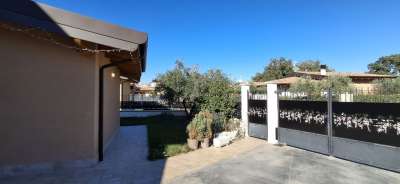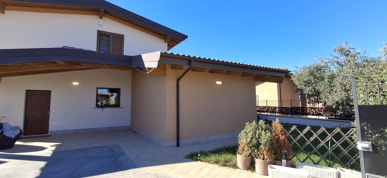 Villa singola nel recentissimo Complesso and quot;Residence AZZURRA and quot;, con vasto giardino perimetrale recintato, accessi carrabile e pedonale e locale accessorio multiuso.\nIl Residence AZZURRA è stato realizzato in Via Fossanelli, zona circondata da verde naturale e campagne ma allo stesso tempo a vicinanza immediata con il centro di Cepagatti, ed è costituita da sole ville singole indipendenti, aventi strada di accesso centrale in comune oltre a parcheggio pubblico betonellato a confine con la strada comunale.\nLa villa in vendita è stata edificata con struttura portante in legno X-LAM coibentato e dotata di caratteristiche tali da fornirle una classe energetica elevata.\nAccesso carrabile e pedonale che accompagnano al portico di ingresso per accedere all´abitazione; Piano Terra con ampio e luminoso open space e affaccio diretto al giardino esterno, angolo cottura e ripostiglio / locale tecnico, disimpegno di collegamento a servizio igienico e camera da letto; scala interna in legno a vista che conduce al livello superiore in cui sono collocati secondo bagno, seconda camera da letto oltre ad una zona studio, totalmente adatta anche per terza camera, perimetrata da parapetto in vetro con vista sulla scala e affaccio esterno su balcone con vista panoramica.\nFunzionalità dei servizi igienici con doccia al Piano Terra e vasca al Piano Primo.\nEsternamente giardino completamente recintato, area barbecue, pavimentazione pedonale dal cancello di accesso e perimetrale su tutto l´edificio, massetto industriale carrabile, accessorio di pertinenza adibito a rimessa / sala hobby completa di porta blindata, climatizzazione e copertura con impianto fotovoltaico da 3,00 Kw a servizio dell´abitazione.\n - Maggiori Dettagli: Climatizzato, Porta blindata, Cucina Abitabile, Sistema di allarme, Videocitofono