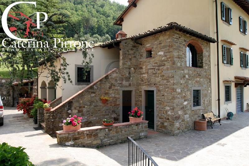 Dicomano fattoria/agriturismo a 30 km da Firenze, vendesi bella propriet in posizione collinare formata da tre unit. La prima di mq.85 composta da piccolo patio, camera da letto, bagno e cucina/soggiorno con caminetto. La seconda di mq.120 ha ampio patio con archi, cucina, salone con caminetto, al piano superiore due ampie camere da letto con un grande bagno. La terza di mq.350 composta al piano terra da ufficio, vano caldaia, disimpegno, palestra attrezzata, cantina; al primo piano antico forno a legna, grande salone con camino, cucina, bagno; al secondo piano quattro camere doppie di cui due con bagno privato, oltre grande bagno. Le abitazioni sono circondate da giardino e terrazza con splendida vista. Piscina. All´interno della propriet ci sono due pozzi per l´acqua potabile e per innaffiare. Le case sono dotate tutte di riscaldamento (le due piccole a gas, la villa a gasolio). Terreno per 22 ettari circa, di cui un ettaro a vigneto con rimessa agricola condonata di mq.55 circa, parte ad oliveta, seminativo e bosco. Attualmente viene svolta l´attivit di casa vacanze sulle tre unit che compongono la fattoria. Le case sono completamente ristrutturate ed arredate. Euro 2.000.000 AZ01 - SC9360321