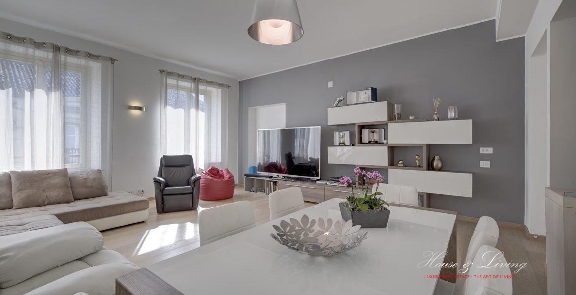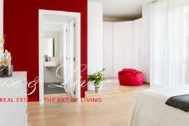 In stabile d´epoca di elevato pregio architettonico appartamento totalmente ristrutturato con finiture di pregio composto da ingresso, ampio zona soggiorno living, cucina, bagno ospiti e lavanderia. Zona notte composta da due ampie camere da letto con bagno privato e cabina armadi. Cantina. Rifiniture di pregio. Possibilità di posto / box auto. Proposta Esclusiva!