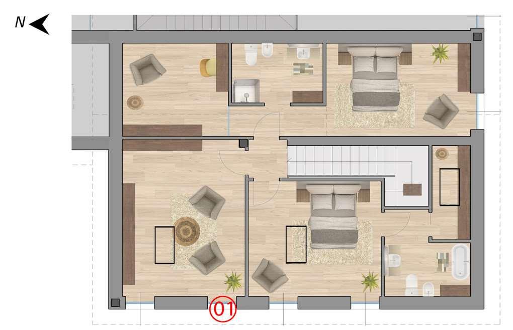 - Soffitta e vano tecnico: 52 m2
