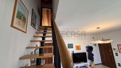 L´appartamento semi-arredato è composto da: ingresso sul soggiorno, cucina abitabile con affaccio sul terrazzo esposto a est e bagno; al piano superiore troviamo due camere mansardate, disimpegno con armadiatura e un ulteriore bagno. Il tutto per un totale di 100mq.