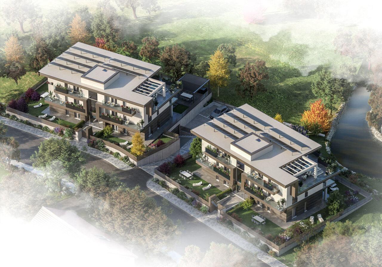 Elegante trilocale di 91 mq posto al piano terra con doppio giardino di 61,74 mq collegato da camminamento su tre lati.